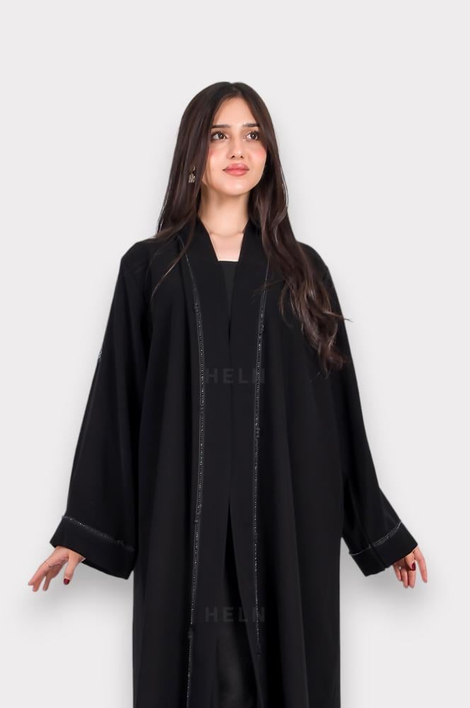 - التصميم : قصة كلوش واسعة من الأسفل جميلة ومحافظة توفر تغطية كاملة وجاذبية مريحة. بالإضافة لشك يدوي يضيف تفاصيل جميلة على العباية، هذا الموديل من العبايات يناسب العديد من المناسبات سواء كانت يومية أو خاصة، تكتمل الإطلالة بإكسسوارات بسية وحجاب أنيق.