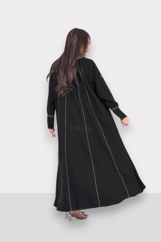 التصميم : قصة فرنسية بتصميم راقي تعطي العباية شكلاً مميزاً وواسعاً من الأسفل، يمكن ارتداؤها في مناسبات متنوعة، سواء كانت رسمية أو غير رسمية. مما يجعلها خيارًا رائعًا لأي مناسبة.