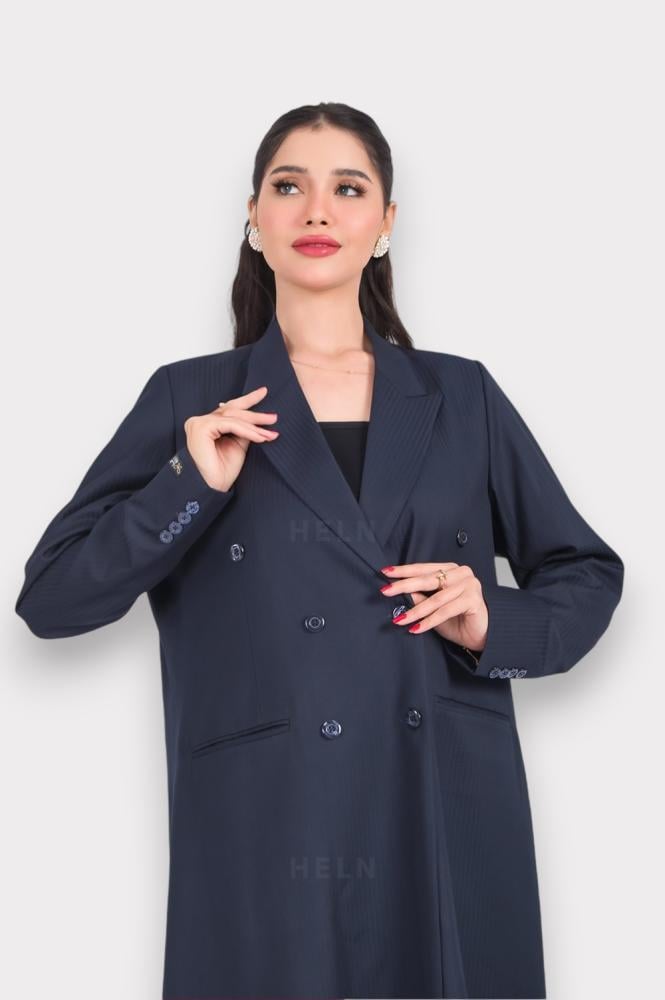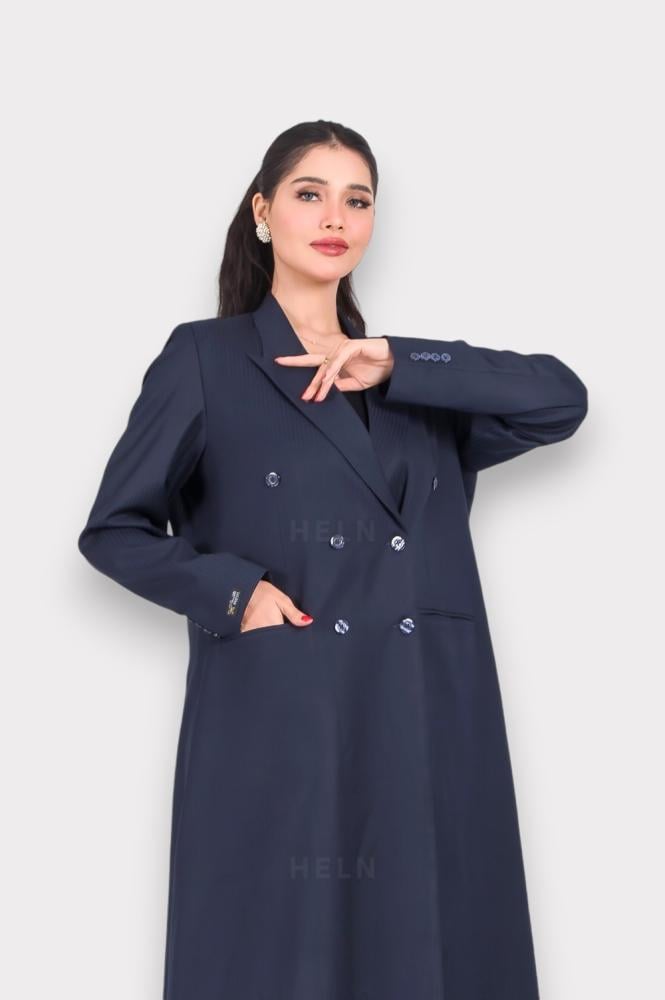 عباية بليزر رسمي FORMAL BLAZER، تصميم أنيق على شكل بليزر مع ياقة كبيرة وأزرار أمامية مصنوعة من الكتان.