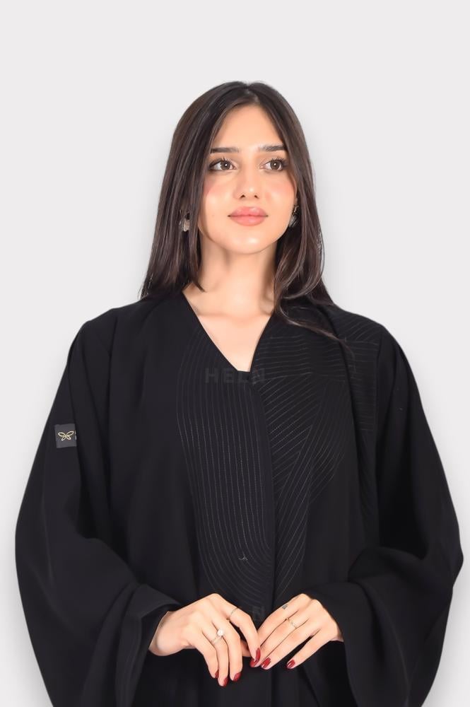 التصميم : عباية كم مربع مصنوعة من قماش كريب اندونيسي مرن وخفيف يمنحها مظهراً فضفاضا، مناسبة لكل الأوقات.