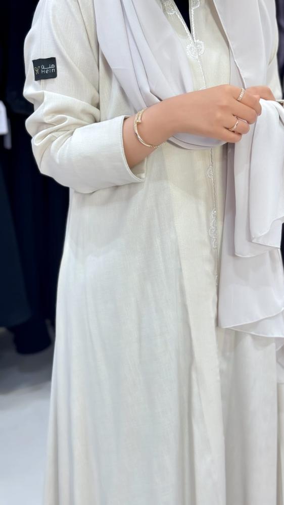 - التفاصيل: مشكوك بلؤلؤ أبيض يمنح العباية لمسة فخامة.